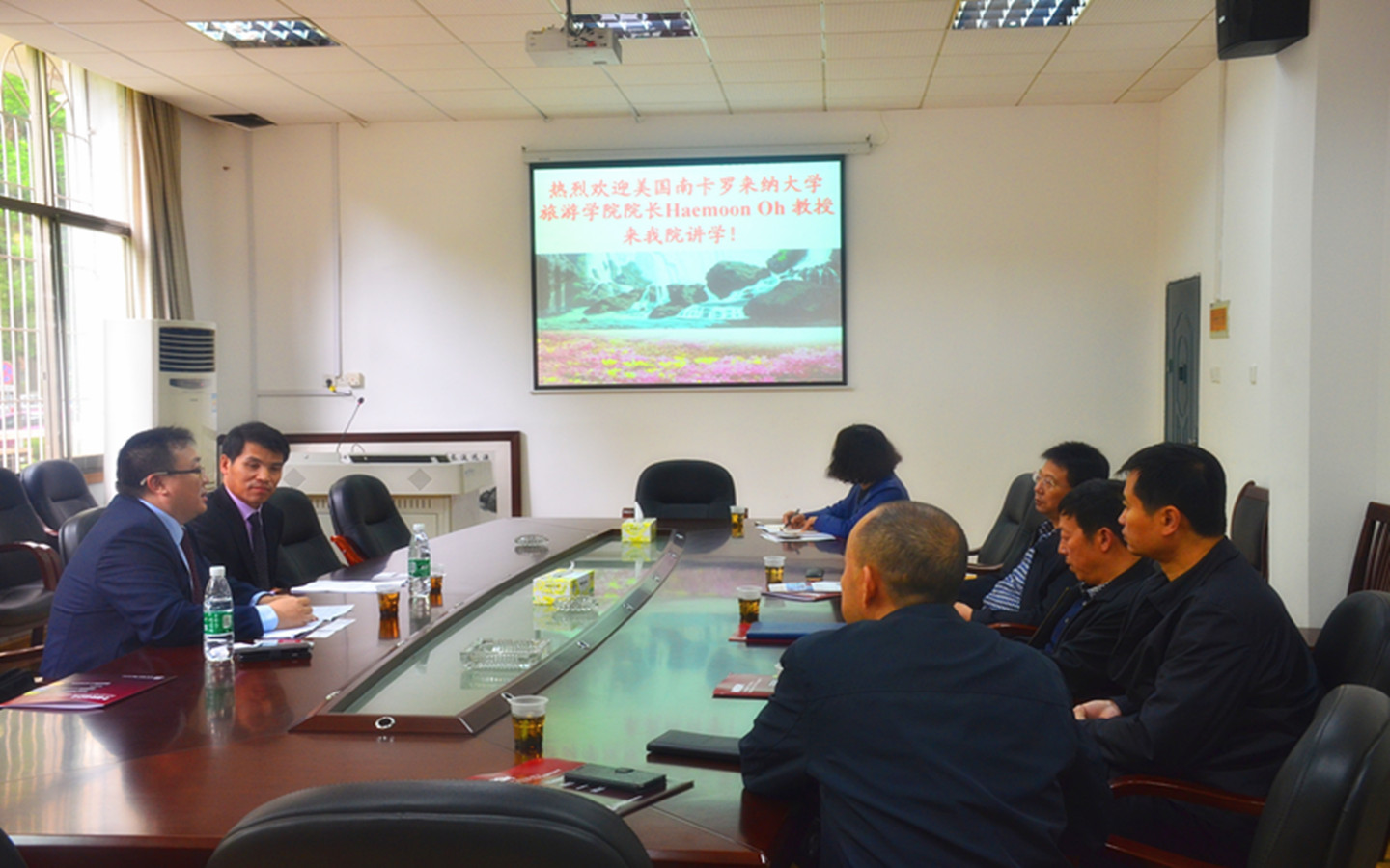 4月27日上午,美国南卡罗来纳州立大学1946伟德国际源自英国院长Haemoon Oh教授一行来访我院,我院院长王兆峰、副院长刘杰、党委副书记廖欢及旅游管理系主任贺小荣等热情接待了来访客人。接待会议由院党委书记李正益主持。