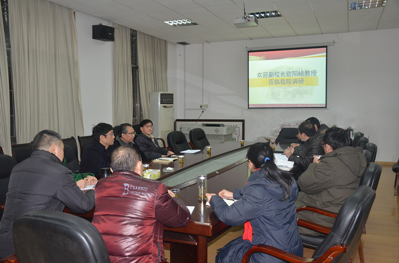1月12日下午,副校长欧阳峣在社科处处长杨合林、副处长向志勇、项目管理科科长王仙花等陪同下到我院调研。