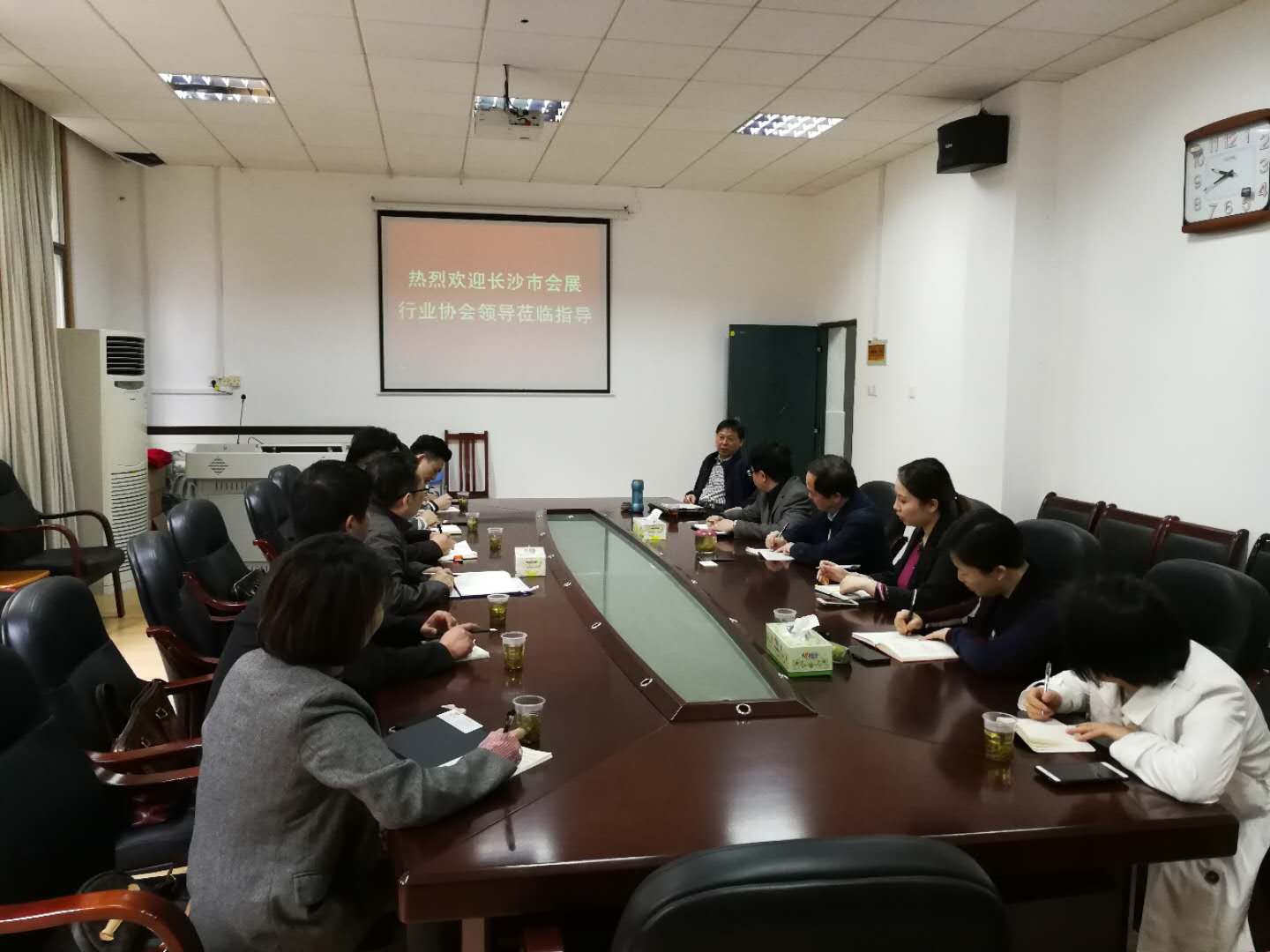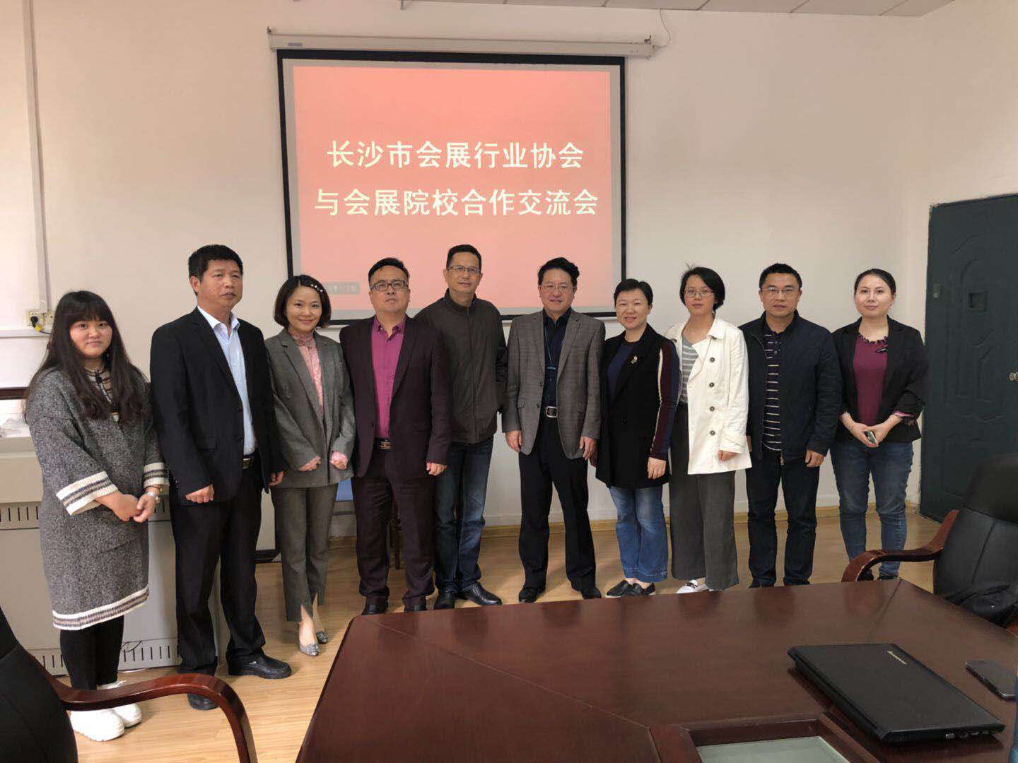 王兆峰对长沙市会展协会一行到访表示欢迎,并简要介绍了学院的基本情况。许春晓从会展专业的申办和会展研究中心的发展历程进行了介绍。