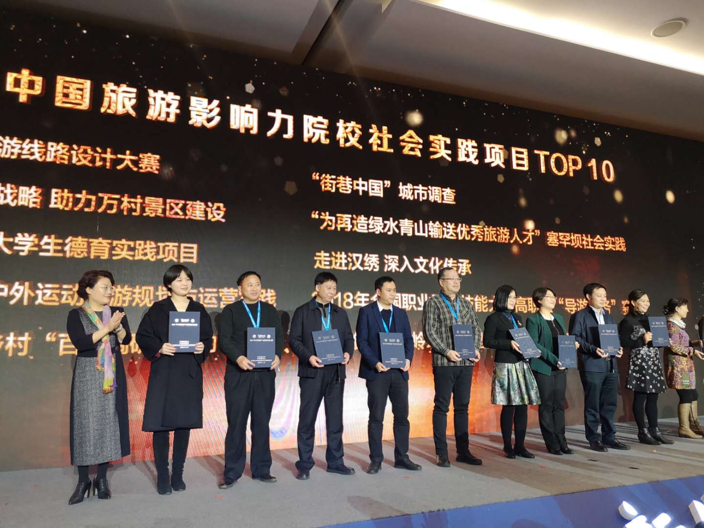1月23日,2019中国旅游产业发展年会在北京举行,本次大会由文化和旅游部批准,中国报业协会指导、中国旅游报社主办。会上揭晓了2018年中国旅游产业影响力风云榜。我院入选2018中国旅游影响力院校社会实践项目TOP10,是湖南唯一入选的院校项目。