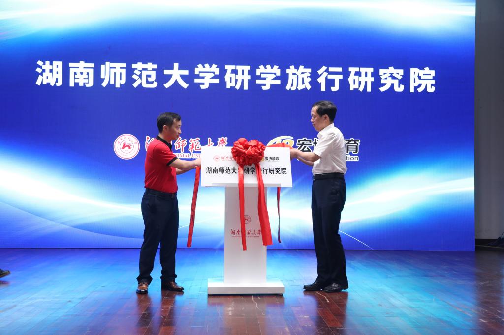 在热烈的掌声中,刘起军和刘丁杰共同为伟德BV1946研学旅行研究院揭牌。
