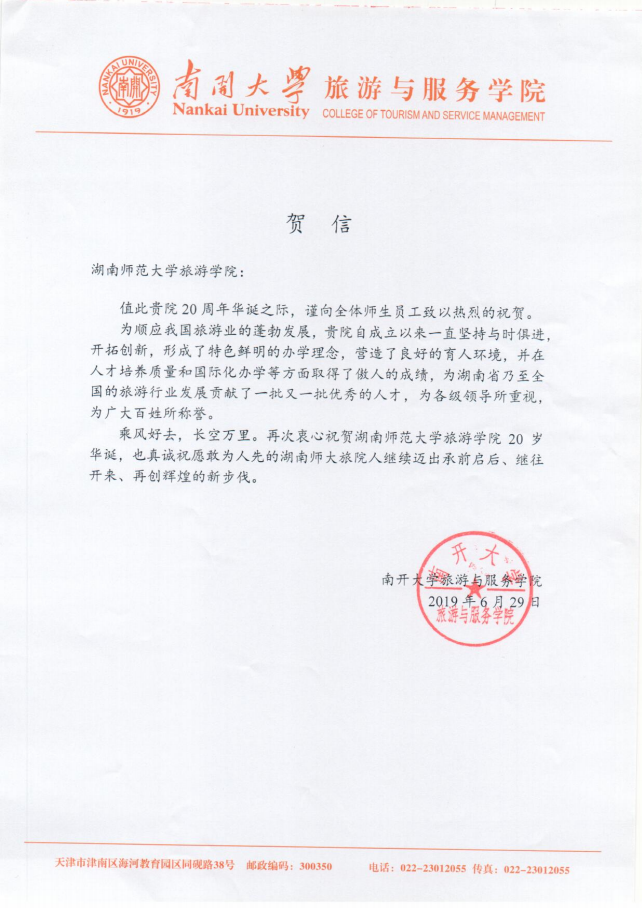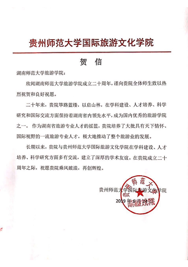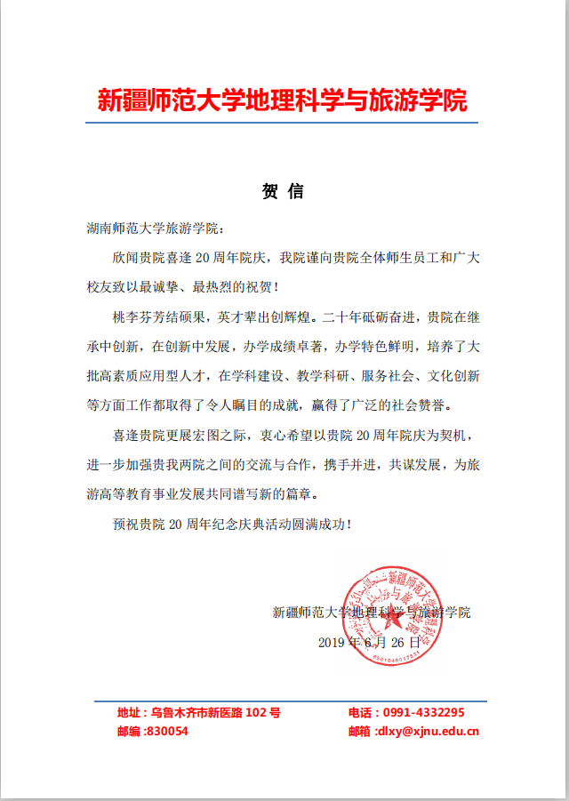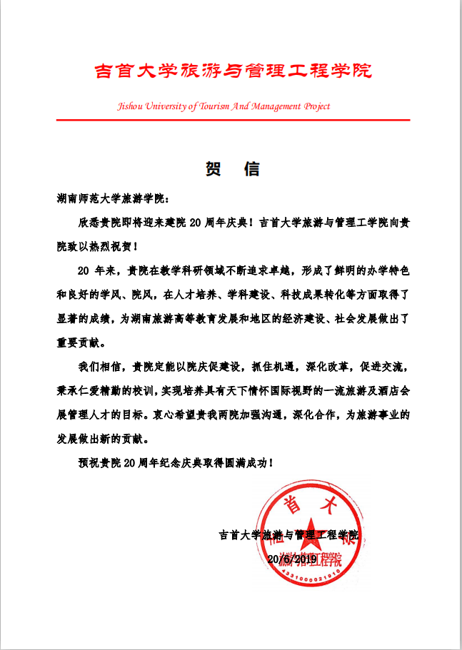 佳期集蕙,盛世相约。在广大校友和社会各界的关心支持下,1946伟德国际源自英国建院20周年系列活动圆满落下帷幕。值此20周年院庆之际,南开大学旅游与服务学院、陕西师范大学地理科学学院等24所兄弟院校发来贺信,祝贺学院20周年华诞,表达美好祝福,并希望继续加强合作交流,共同推动旅游教育事业繁荣发展。