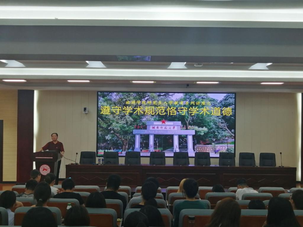 (通讯员 陈雪洁)9月12日上午,学院于中和讲堂召开研究生学术道德教育大会,副院长许春晓教授出席会议并做题为《遵守学术规范 恪守学术道德》的专题报告。