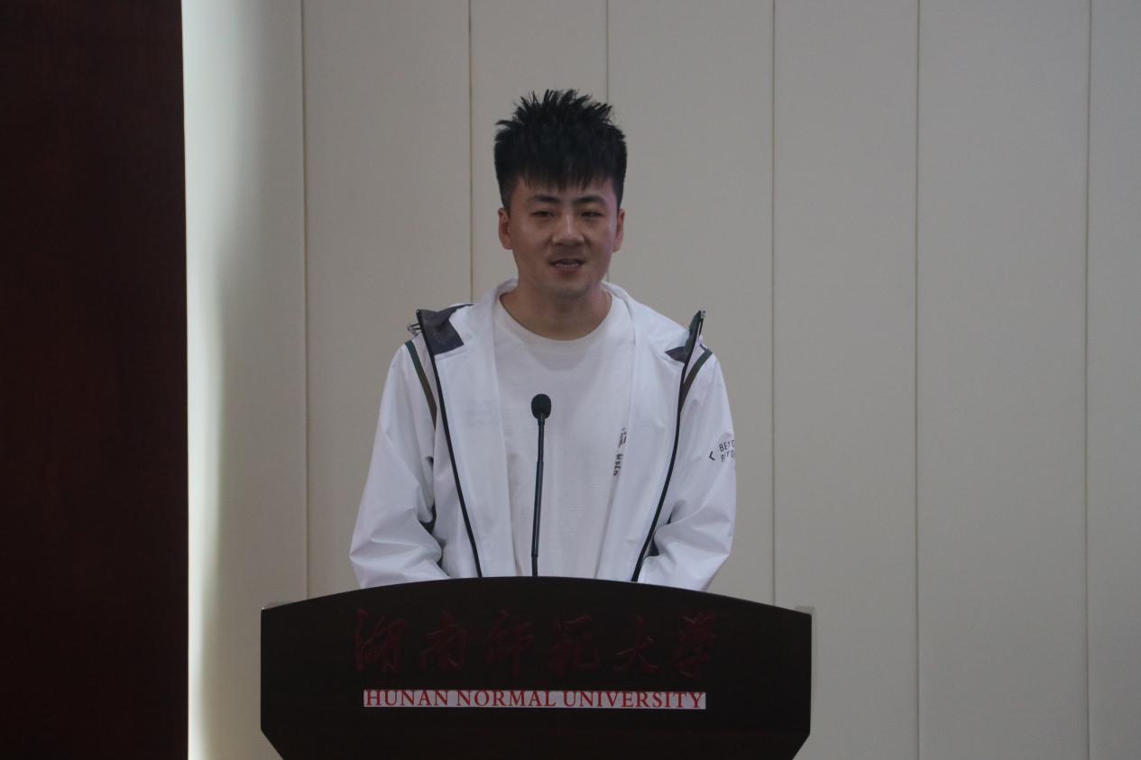 王喆作为校友发言,他希望同学们在大学期间能培养自己健全的人格,拥有独立的思想,找准自己未来的发展方向,勇于创新,勇于实践,全面发展。