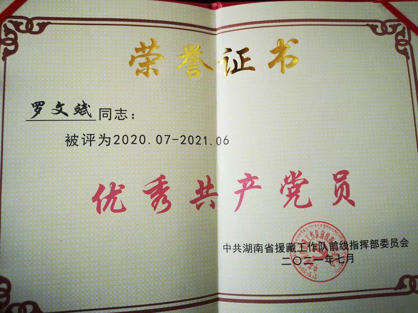 会上,我院罗文斌副教授做了“学党史汲取精神力量、跟党走强劲奋斗步伐”的主题分享,获得了大家的一致好评。综合援藏工作表现,经过推荐、评选,罗文斌同志荣获“优秀共产党员”称号和“三等奖”表彰(一等奖1名,二等奖2名,三等奖3名)。