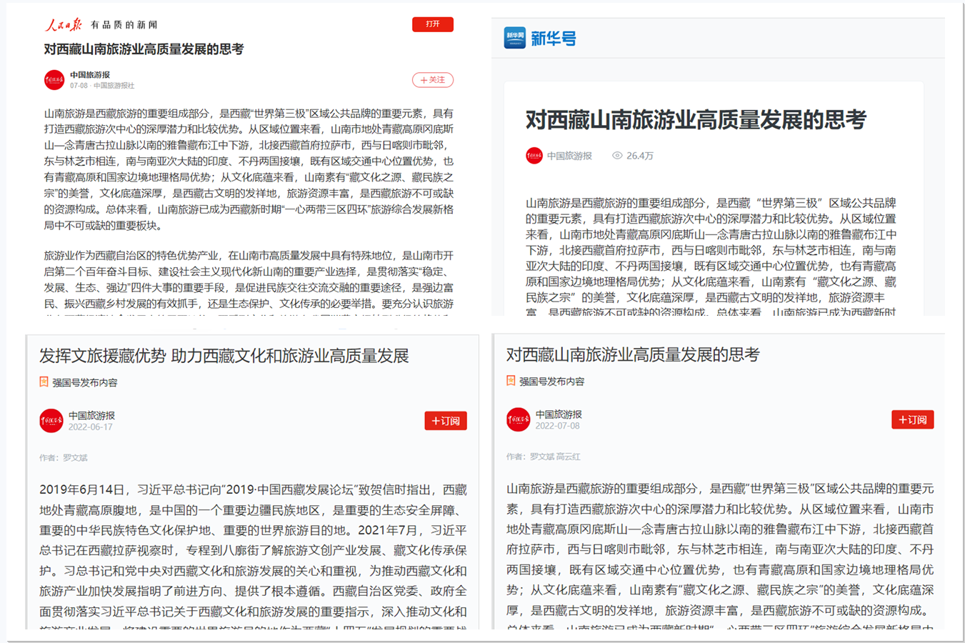 近日,湖南省第九批援藏干部、我院罗文斌副教授撰写的《对西藏山南旅游业高质量发展的思考》《发挥文旅援藏优势,助力西藏文化和旅游产业高质量发展》等系列文旅援藏理论成果被《学习强国》《人民日报》《新华网》等媒体相继转载,引发广泛关注和良好反响。