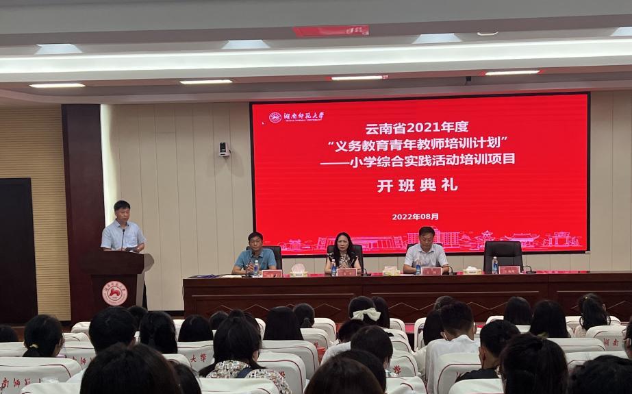 8月19日上午,由云南省教育厅举办,我院承办的云南省2021年度“义务教育青年教师培训计划”——小学综合实践活动培训项目在我院中和讲堂举行开班典礼,来自“七彩云南”的150名小学教师将在我院进行为期42天的培训,教育部基础教育教学指导委员会综合实践活动教学指导委员姜平,我校副校长王辉,我院院长王兆峰出席开班典礼,开班典礼由我院副院长向智勇主持。