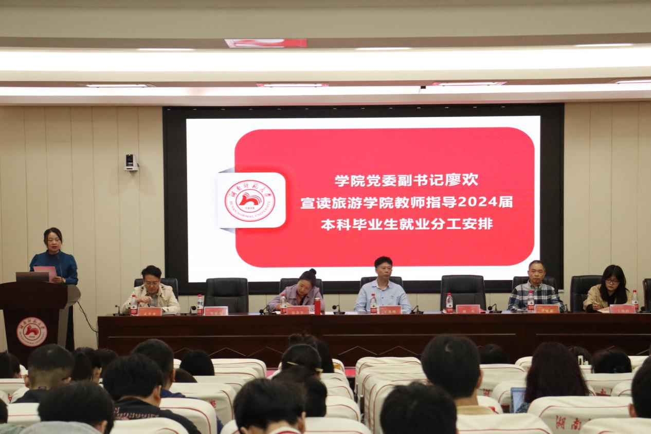 廖欢宣读了1946伟德国际源自英国专任教师指导2024届本科毕业生就业分工安排。