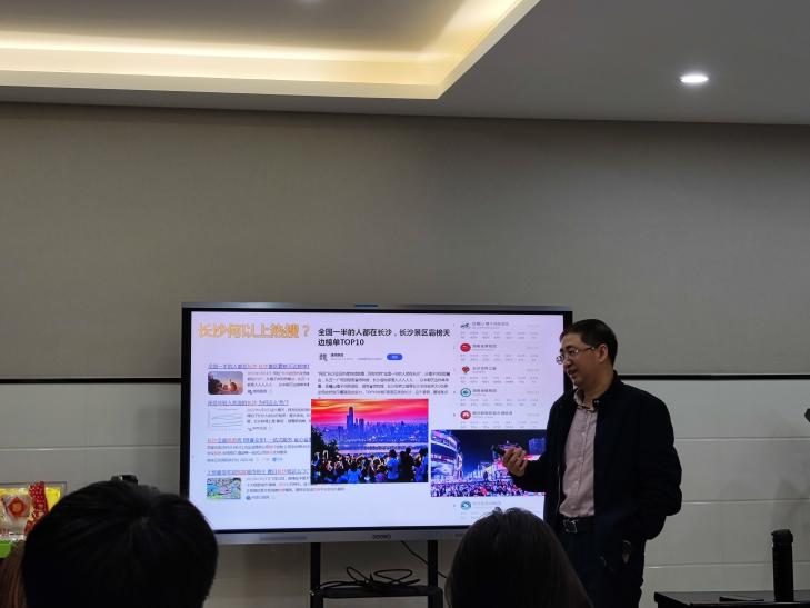 首先,学院副院长、旅游管理系支部书记郑群明教授以“长沙文旅新体验新方向”为题,以长沙夜间消费业态为例,从“长沙夜间消费现状 ”、“长沙网红城市在全国的地位”、“网红长沙的经济拉动效应”三个方面介绍了长沙在全国的地位,指出当下文化和旅游深度融合的过程中夜间经济的价值挖掘、努力方向和策略选择。