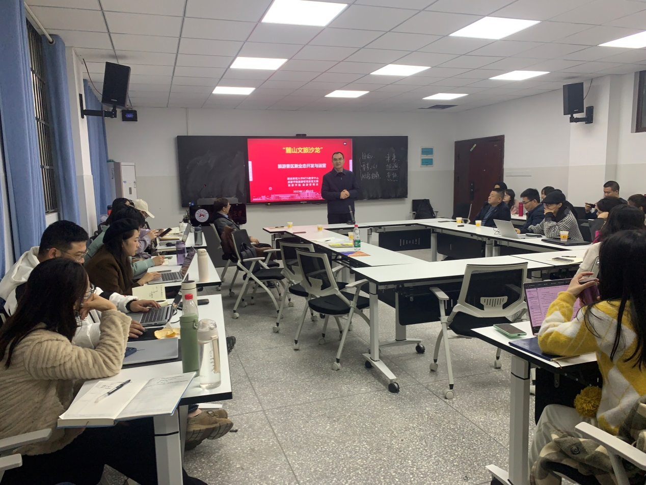 11月12日下午,第六场“麓山文旅沙龙”于中和楼118智慧教室举行,本次沙龙由伟德BV1946MTA教育中心、旅游管理系和旅游管理系党支部联合组织,主题为“旅游景区新业态开发与运营”。学院副院长、旅游管理系党支部书记郑群明出席并主持本场沙龙,我校MTA校外导师、岳阳市文化旅游开发有限公司常务副总经理李平雄,MTA校外导师、湖南中楚旅文化旅游有限公司总经理喻曙光,以及中南林业科技大学教师雷晓东和博士张理英担任主讲嘉宾,学院四十余名研究生参加了本次沙龙活动。