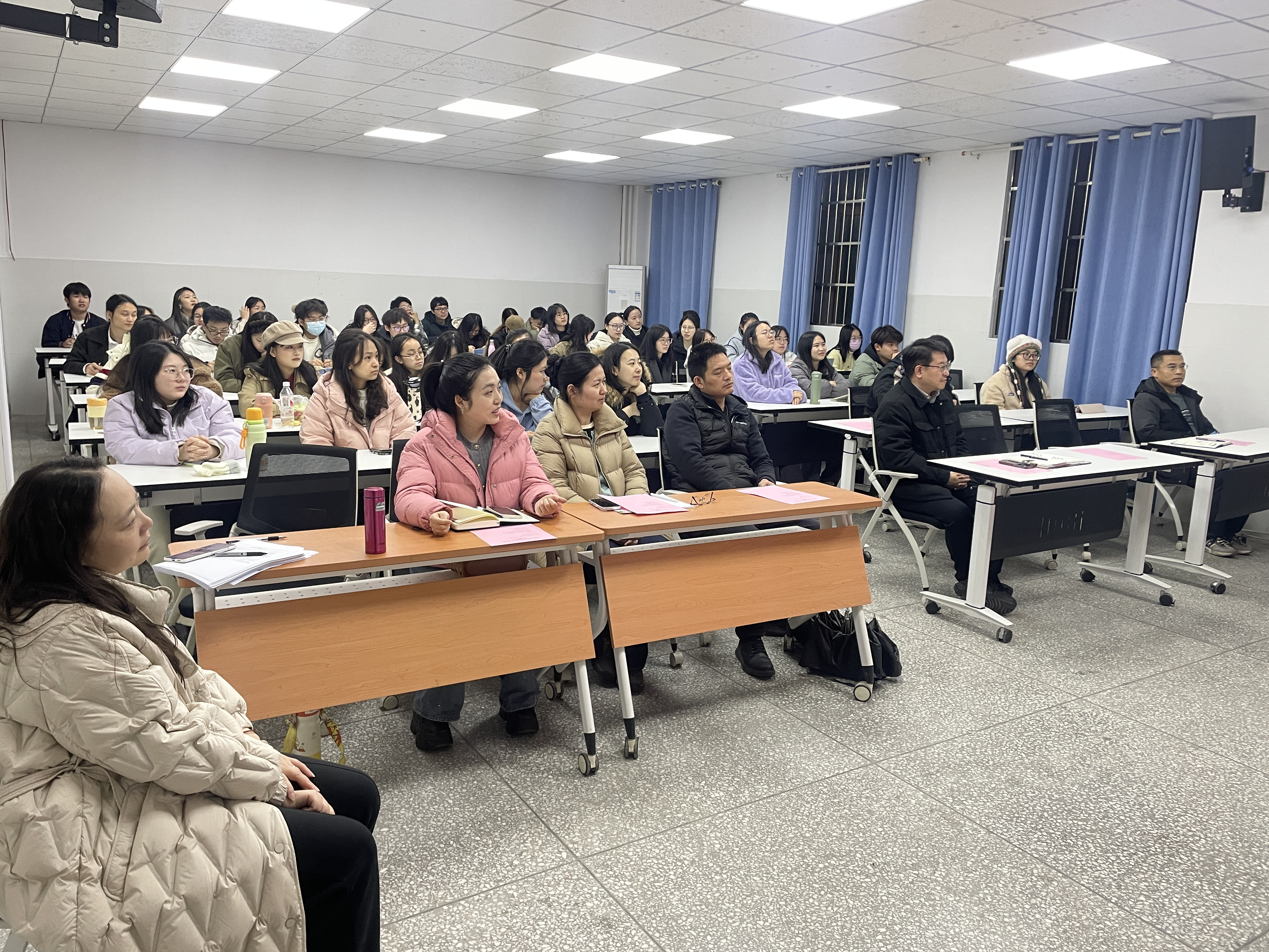 随后杨彩、曹瓅和向兰作为实习指导老师代表寄语实习生们要充分准备,积极表现,高质量完成专业实习任务。