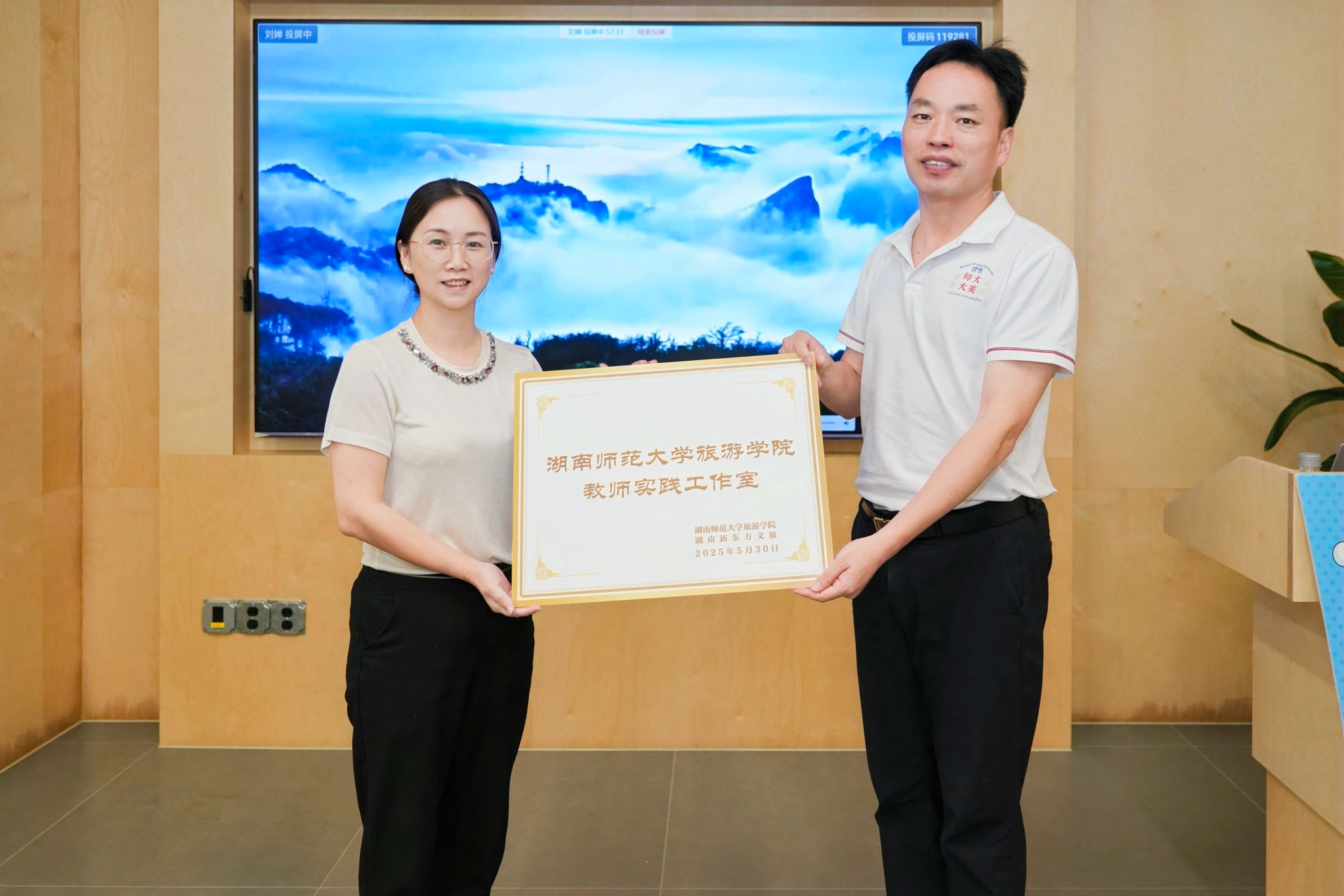 期间,罗明与湖南新东方文旅公司副总刘超共同为“伟德BV1946教师实践工作室”揭牌。这一教师实践工作室是旅游管理系与新东方公司在前期合作基础上的拓展和提升,旨在促进旅游管理教师深入公司开展实践教学研究工作交流,提升教师实践能力,加强学院“双师型”队伍建设。