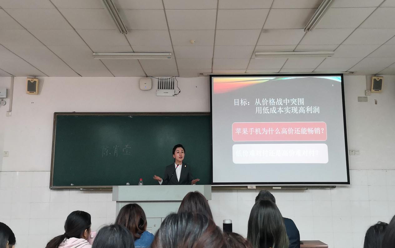 主讲人陈肖莹女士将讲座分为三个部分:第一部分“目标:从价格战中突围,用低成本实现高利润”、第二部分“苹果手机为什么高价还能畅销”、第三部分“解决方案”。