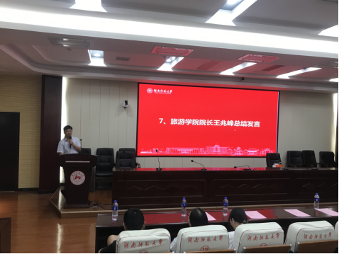 王兆峰作总结发言。他强调了实习的重要性,对会展经济与管理系今后的实习工作提出了更高的要求,勉励同学们继续努力,发扬苦中作乐的精神,在后面的就业和考研中找准目标,鼓励同学争取考上理想的学校,找到理想的工作。