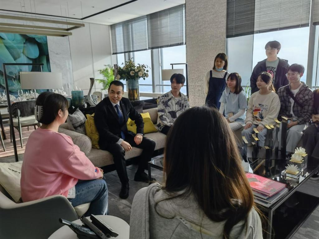酒店人事部黄以静带领大家前往培训室与行政管家郭远芳、人力资源总监肖科伟进行座谈交流。期间,同学们热情提问并认真记录,酒店管理人员耐心给予解答。随后,郭经理带领大家参观酒店大堂、客房、餐厅、宴会厅、健身房等区域。最后以在客房的大合照结束了本次调研之旅。