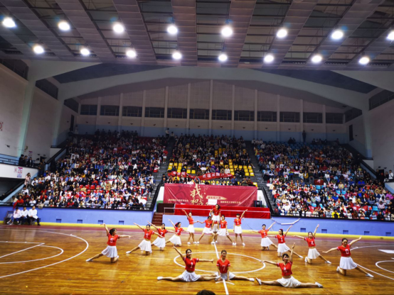 (通讯员陈雪洁)4月21日晚,伟德BV1946第十六届女生节闭幕式暨“我和我的祖国”健美操比赛于校体育馆举行。院党委书记鲁良、党委副书记廖欢、梁爱君老师、雷紫绚老师、邓丛亮老师亲临现场观看了比赛,为我院健美操选手鼓劲加油。