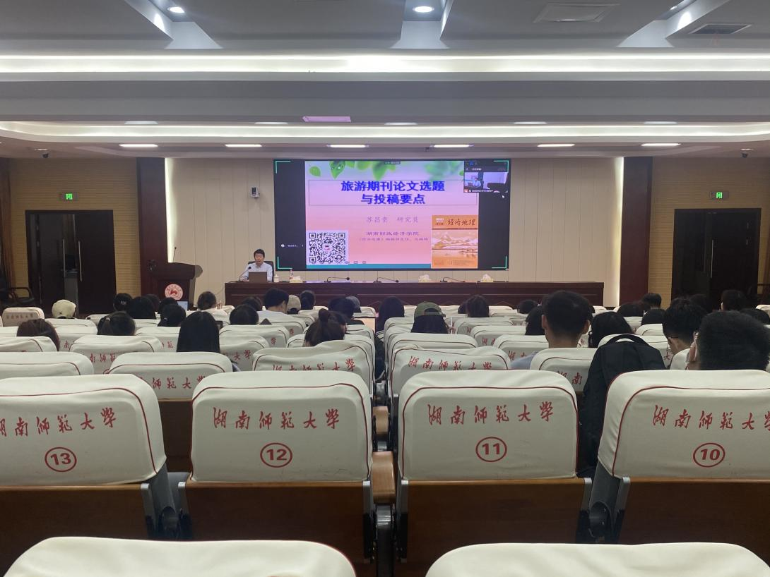 10月17日晚,我院于中和楼234教室举办“旅游论文选题与投稿要点”主题讲座,特邀湖南省经济地理研究所副所长兼《经济地理》编辑部主任苏昌贵研究员主讲。我院2022级全体研究生参与。