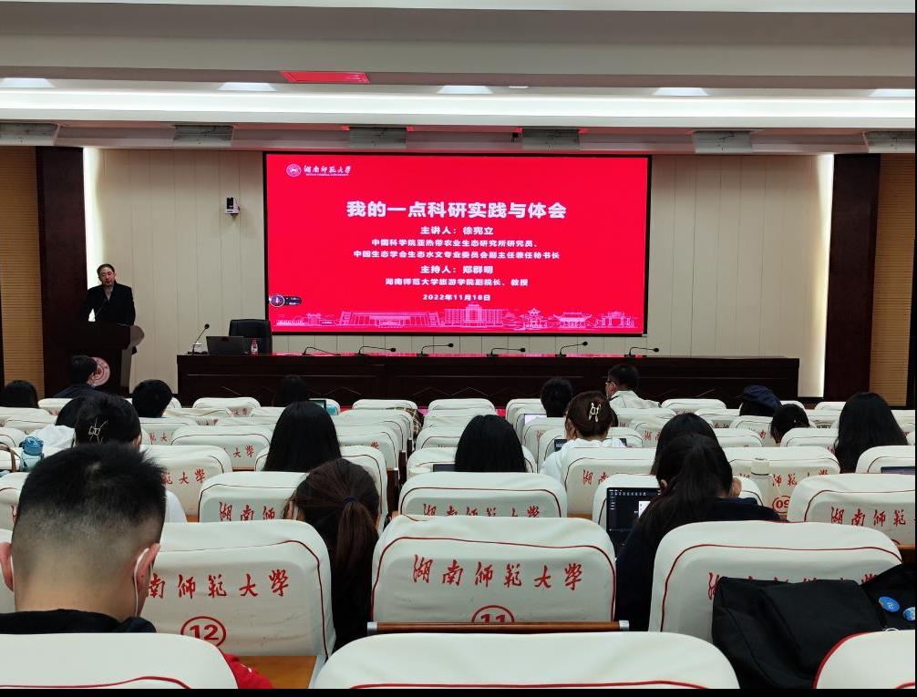 (通讯员 袁满)11月18日上午,我院于中和楼234报告厅举行“我的一点科研实践与体会”主题讲座,特邀中国科学院亚热带农业生态研究所研究员徐宪立主讲。讲座由我院副院长郑群明教授持,2021级和2022级全体研究生参与。