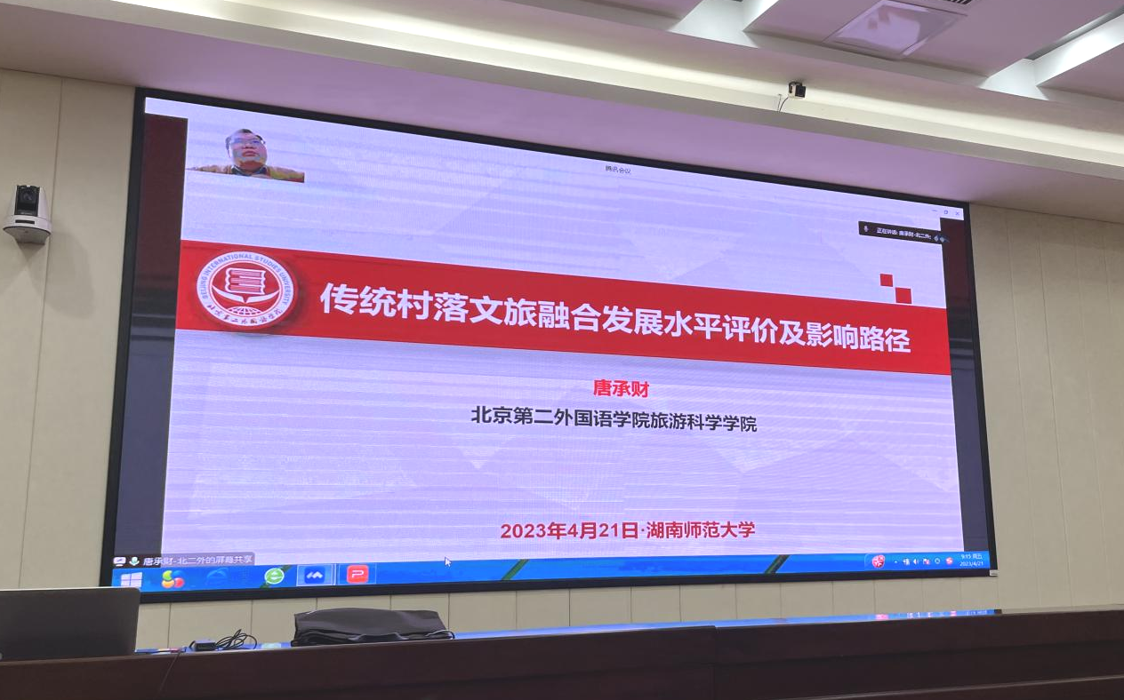 4月21日上午,我院举行“传统村落文旅融合发展水平评价及影响路径”主题讲座,特邀北京第二外国语学院旅游科学学院教授唐承财主讲。讲座由我院副院长郑群明主持,我院全体研究生参与。