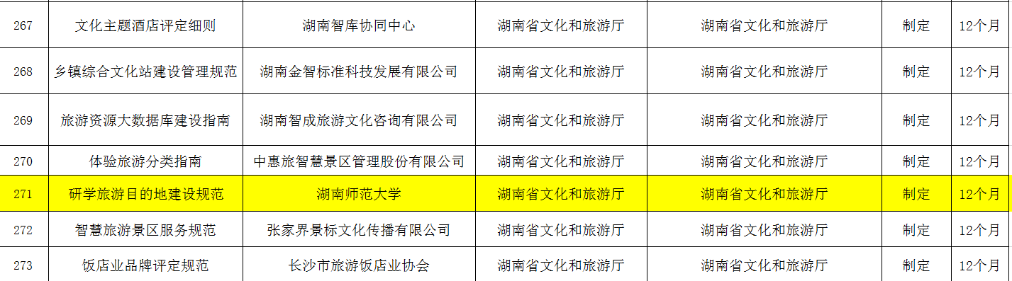 2020年3月31日,湖南省市场监督管理局发布了《关于下达2020年地方标准制修订项目计划的通知》,我院教授、研学旅行研究院常务副院长郑群明主持申报的《研学旅游目的地建设规范》获得湖南省地方标准立项。据悉,这是继2019年郑群明教授主持的《研学旅游示范基地评价规范》和孟奕爽副教授主持的《研学旅行产品设计规范》之后,由研学旅行研究院牵头的第三个我省研学旅行领域地方标准。