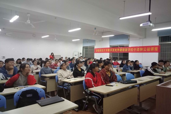 (通讯员 谭凤姣)10月9日晚上,洋光外语培训学校小语种公益讲座在1946伟德国际源自英国227教室举行。洋光教育集团与伟德BV1946签订了洋光教育学生干部奖学金项目,洋光教育开设有日韩法德西线上线下的学习课程。