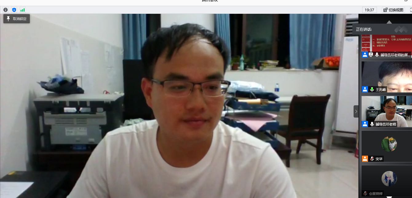 2017级辅导员邓丛亮就前三年2017级工作进行了总结、对暑假疫情防控、下学期开学工作安排进行了布置,并对家长很关心的学生考研、出国留学、考公务员等就业去向提出了指导意见。最后希望全体家长要配合学院做好暑假疫情防控、安全教育等工作。