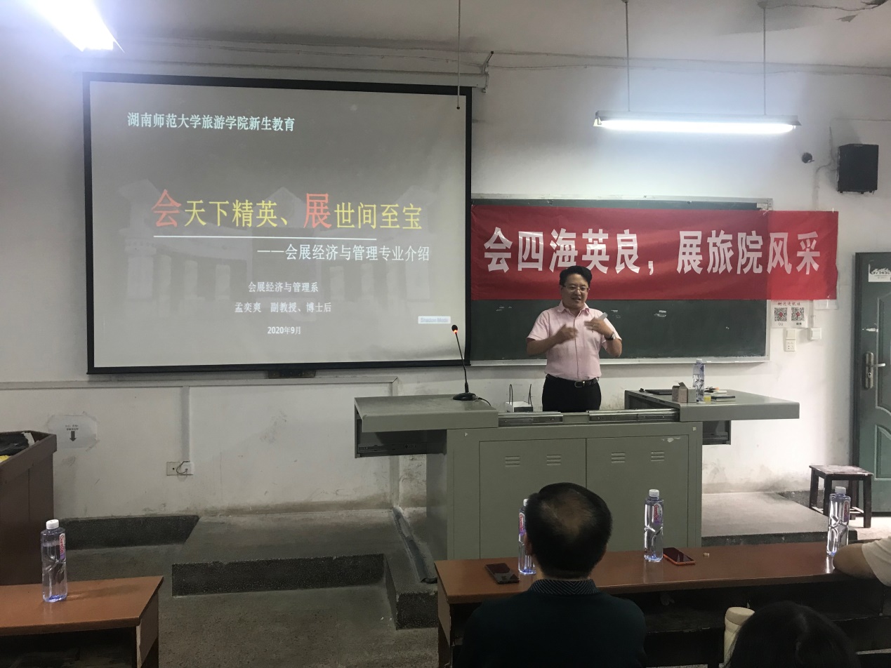 (通讯员 张佳乐)9月14日下午2时,会展经济与管理专业2020级新生专业教育大会在湖南师大张公岭校区教学楼201教室举行。我院副院长许春晓,会展经济与管理系主任孟奕爽,副主任朱张祥、班导师石松以及往届优秀学生代表邱笑予、刘楚明和夏梦婷出席此次会议。会议由19级会展班班长肖玉洁主持。