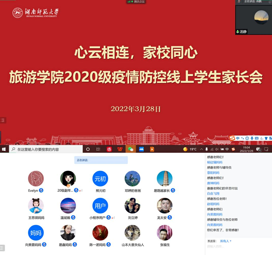 在封校背景下,有重点、全覆盖式了解学生心理困惑和诉求,召集全院心委、寝室长等近400名学生心理骨干召开“防疫心理调适与心理危机干预培训会”,发挥朋辈力量帮助同学们平稳度过情绪爆发期。组织4期“云心相连 家校同心”线上家长会,以图文并茂的形式向家长们汇报校院各项防疫举措,“师大的老师们辛苦了,学校管理有方,我们家长很放心”,真情实感的流露凝聚起同心抗疫的家校向心力。