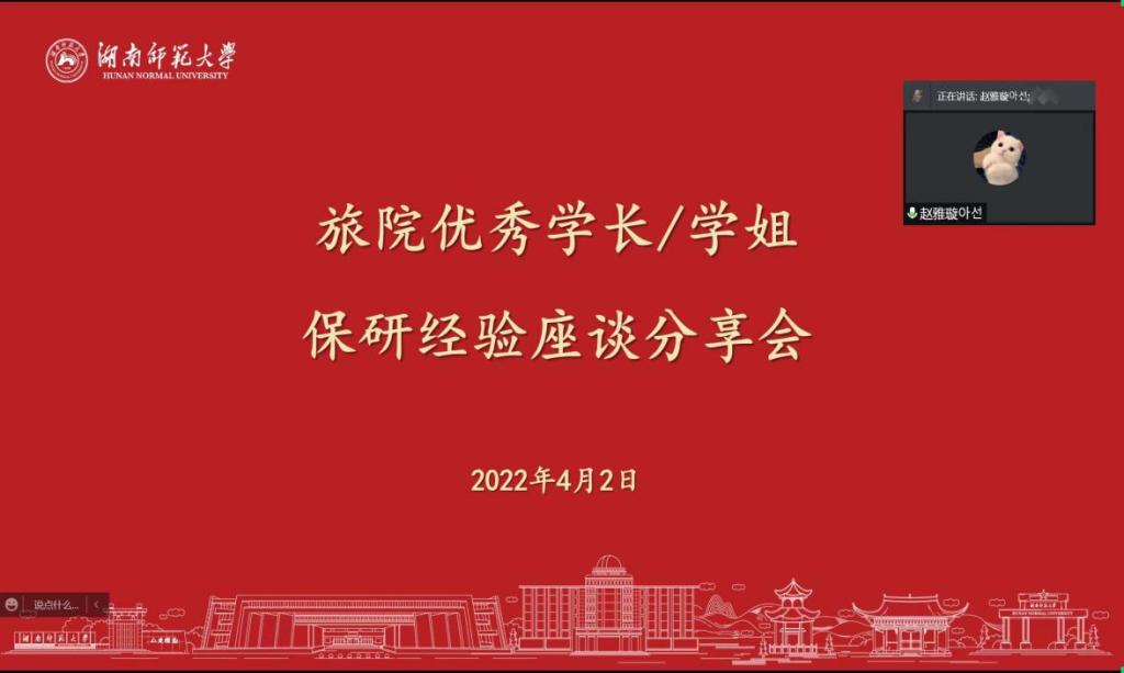(通讯员 周娜 刘茜)在疫情防控和学风建设“两不误、双促进”倡议下,4月2日,1946伟德国际源自英国2021级举办了线上“保研交流沙龙”。此次沙龙由21级辅导员赵雅璇主持,邓婵、翁金燕、陈千惠、张慧、田露茜5名保研学子依次进行分享。