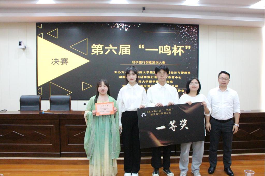 (通讯员 王晗 刘茜)为了提高我院2021级学生综合素养、加强专业认知、培养创意思维和创新精神,2022年5月29日下午1点至5点,第六届“一鸣杯”研学旅行创意策划大赛决赛在中和讲堂隆重举行。进入决赛的16支队伍纷纷登台汇报,向评委们展示了研学项目策划和执行的内容。本次比赛由我院、研学旅行研究院和研学旅行创新创业教育中心主办,湖南应景文化创意有限公司(独角兽研学院)协办,酒店与会展协会承办。33支队伍135名同学在指导老师和学长、学姐的帮助下,经过选题、培训、初赛,最终有16支队伍,60人进入决赛。比赛评委由会展研究中心主任蔡卫民副教授、会展经济与管理系副主任朱张祥博士、院团委书记龚曦老师和企业界专家独角兽研学院联合创始人江海珍、湖南省中小学研学实践协会副秘书长钟洪利担任,研学旅行研究院副院长、会展经济与管理系主任孟奕爽副教授、湖南省应景文化创意有限公司创始人史双全全程观摩了比赛并为获奖选手颁奖。