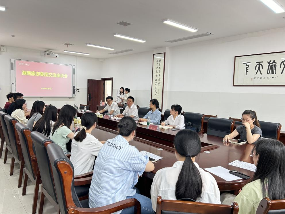 2024年6月7日下午,湖南旅游集团党委副书记、职工董事李域一行来我院开展人才需求交流座谈会。学院院长王兆峰,学院党委副书记廖欢,学院副院长向智勇、郑群明,专职组织员骆劲华,研究生办辅导员雷紫绚,学工办辅导员赵雅璇、邱粤湘参加了座谈会,座谈会由廖欢主持。