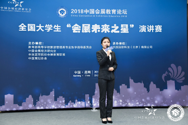 (通讯员 李青 郑子枫)4月20日,由教育部高校旅游管理类专业教学指导委员会、中国会展经济研究会、全国高等院校会展教育联盟和中国策划协会联合主办的第四届全国大学生“会展未来之星”演讲比赛在云南昆明云安会都举行,我院2017级会展与经济管理班于诗朦同学荣获此次演讲比赛一等奖。