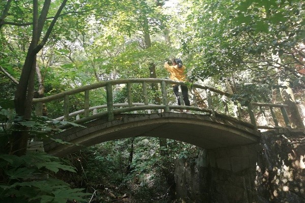 | 志愿者在桥上进行拍摄 |