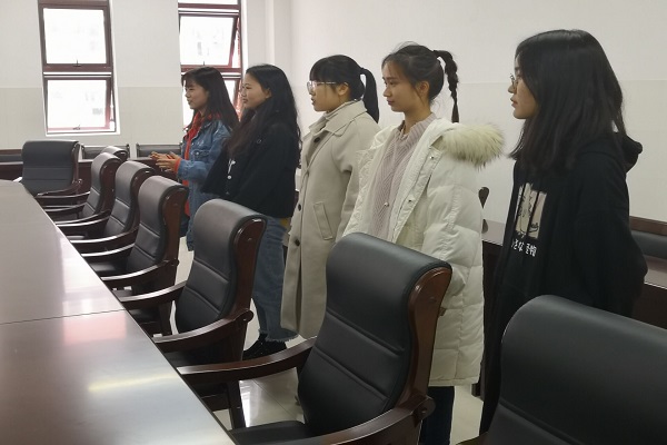面试开始前,刘薇为参与此次面试会的同学们介绍了各个志愿岗位的职责,同学们认真倾听并做笔记。随后,同学们拿着报名表,根据序号,以五人为一组依次进入大会议室参与面试。