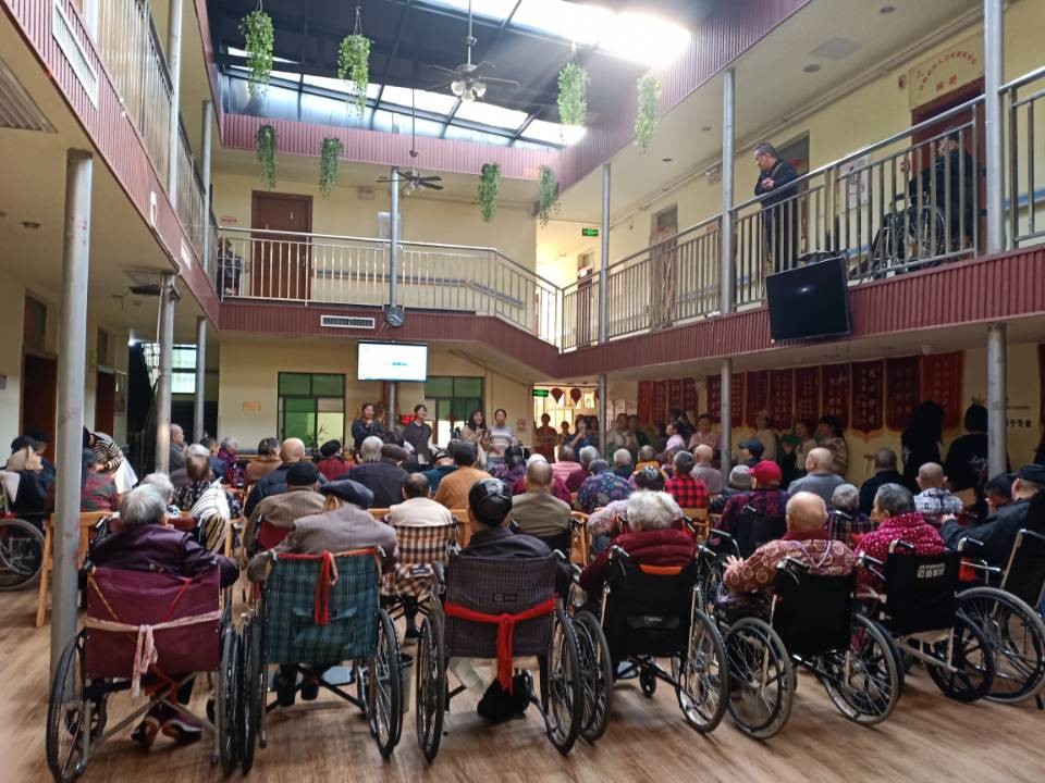 活动初期,志愿者们分成两个小组,一组负责打扫后院卫生,清理落在角落的垃圾;一组在厨房洗切水果,做水果拼盘。与此同时,养老院的老人们移至大厅就坐,志愿者们将准备的牛奶和水果送给老人们,并共同等待现场活动的正式开始。