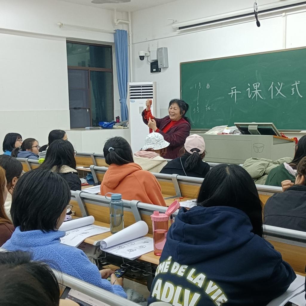 在开课仪式前,院团委社会实践部的干事们为现代女红工艺课的各位同学介绍课程基本情况,考勤要求,并组织学员购买教材。