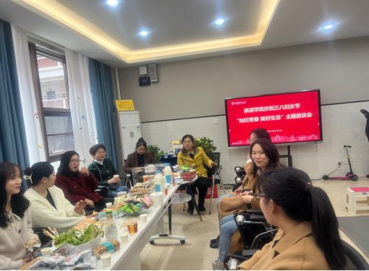 为营造团结、愉悦的氛围,此次活动除院工会精心准备的茶点,还特别设置了自带食物环节,由女老师们带上自做的卤菜、沙拉、蛋糕、饮料等,大家边分享厨艺边开怀畅聊。整场活动围绕爱情观、婚姻观与家庭观进行,在轻松愉悦氛围中持续了近3个小时。青年教师王俊辉结合自身的经历和体会分享了她的爱情观,并给在座的女生提了10条建议。身为两个孩子母亲的刘芳老师结合自身的研究成果认为女性在家庭中更具有领导力和坚韧性;同时对女性如何平衡工作、家庭与婚姻等给出了很好的建议,富有启示。工会主席汤静老师用事例告诉在座的女生们要树立正确的爱情观、婚姻观和家庭观,引起了现场强烈的共鸣。汤静老师同时积极引导女老师们学会释放压力,鼓励女生们讲出困惑,并希望大家都能从本次活动中受益。其间,在座的女老师都畅所欲言,相互交流,气氛轻松又热烈。