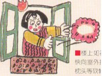 8、楼上如被火围困,快向室外抛沙发垫,枕头等软物,和其他小物品,夜间则可打手电筒发出求救信号。