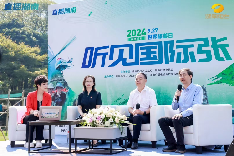 2024年9月27日,结合世界旅游日契机,张家界市人民政府和湖南广播电视台携手,由张家界市文化旅游广电体育局、湖南广播电视台广播传媒中心新闻部承办的融媒直播《直播湖南——听见国际张》正式开启,这也是全球首张景区专属声音名片,我院副院长郑群明教授受邀担任现场直播嘉宾。