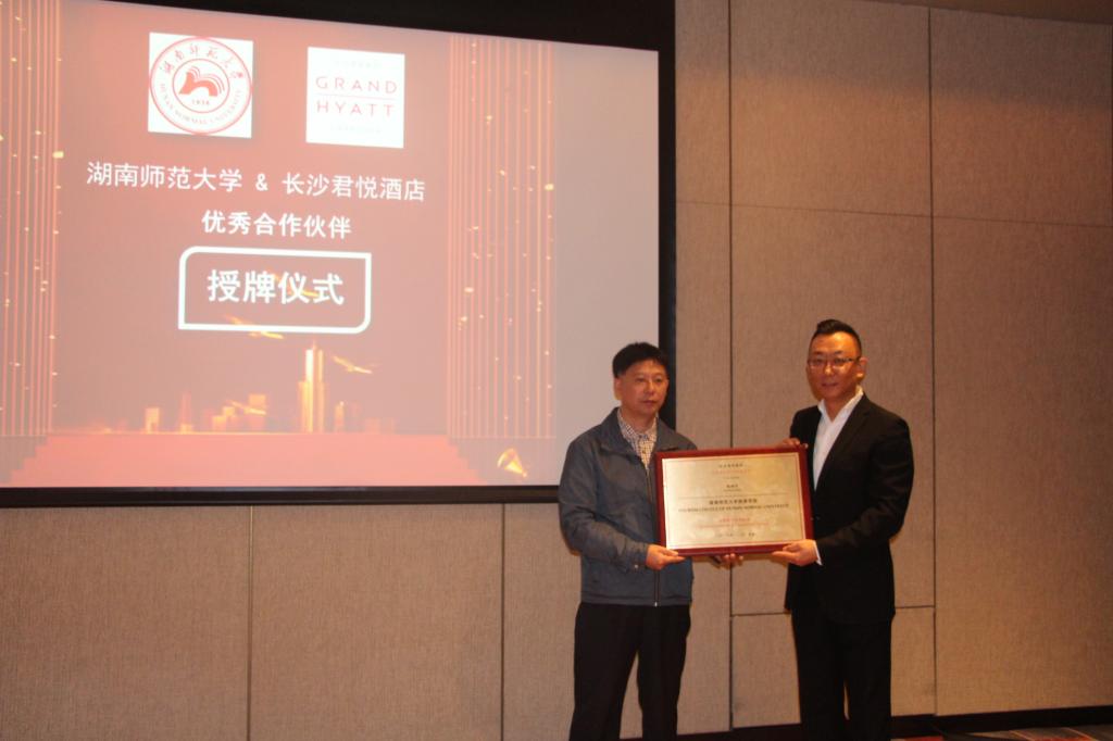 王兆峰代表所有在君悦酒店实习过的学生向君悦酒店致以诚挚的谢意,感谢君悦酒店为我院学生提供了实习平台和发展机会,并向酒店传达了持续合作的美好意愿。