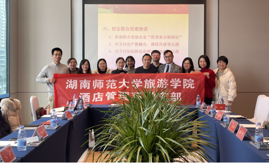 活动期间,校企双方就产教融合、课程共建、创新创业酒店基地建设等议题进行座谈。会上,唐健雄表示学生离校实习但不离党,党支部非常重视在企学生的思想政治工作,将在校企支部合作、创新育人等方面进一步深化交流合作,形成长期合作机制。校企党支部应做好支部对接,更好地服务学生,通过形式多样的校企活动加强支部之间的联系,以便更好地开创校企党建合作新局面。他还提出要探索建立校企“双导师”制,校企双方共同关注实习生的思想和实习动态,帮助学生树立正确的就业观。