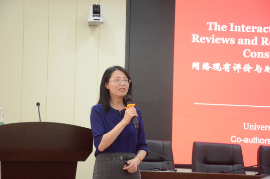 孟芳以自己的研究成果为例,向在场师生详细讲解了学术研究从前期准备、数据收集和模型构建到论文写作的基本要素和格式规范各方面内容。她认为学术研究应从当前研究空白出发,由此引出相关概念和研究目的,通过查阅、分析已有理论、文献,提出假设并确立研究方法,通过数据收集和数据分析建立相关模型,最终形成自己的结论和观点,实现研究的理论贡献和现实意义。她从方法和过程两个方面向我们阐述了学术研究应该如何进行并如何形成研究成果,内容丰富、详尽,在座师生受益良多。