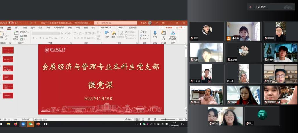 (通讯员 莫菲)11月19日,为学习贯彻党的二十大精神,会展经济与管理本科生党支部围绕学习贯彻党的二十大精神组织开展了党员讲“微党课”主题党日活动,活动由支部书记张敏组织。