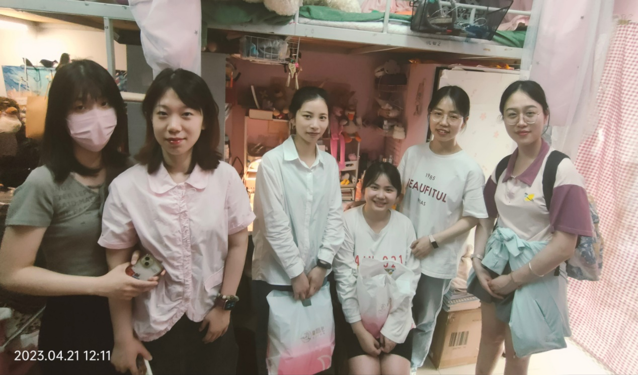 4月21日,我院党委副处级专职组织员骆劲华组织学生党支部全体支部书记一行,前往生病党员所在的宿舍,代表学院送去关心和慰问。