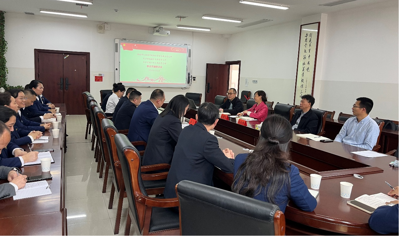 双方在中和楼233会议室举行了联合党建座谈会,我院党委书记闵素芬、院长王兆峰出席。