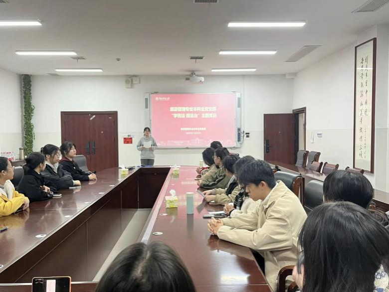 12月9日下午,旅游管理专业本科生党支部在中和楼233会议室开展了以“学宪法 践法治”为主题的党日活动。本次活动由党支部副书记王钰熹主持,支部全体党员参与。