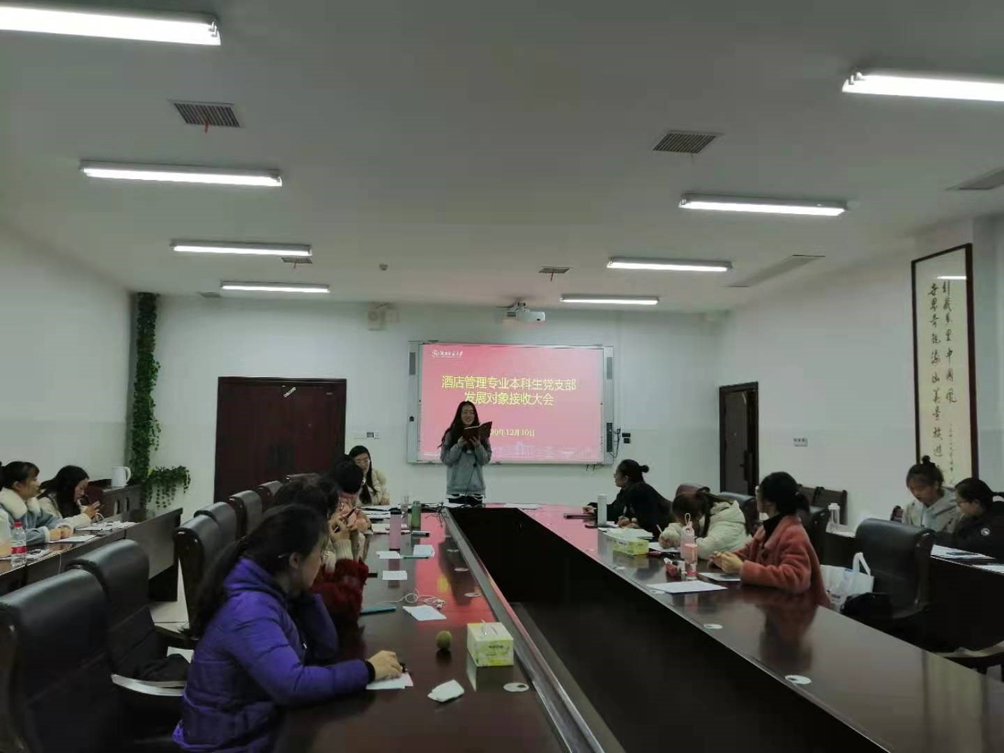 (通讯员 李青)12月10日晚,酒店管理专业本科生党支部于中和楼233会议室举行发展对象接收大会,会议由支部书记杨静主持召开。