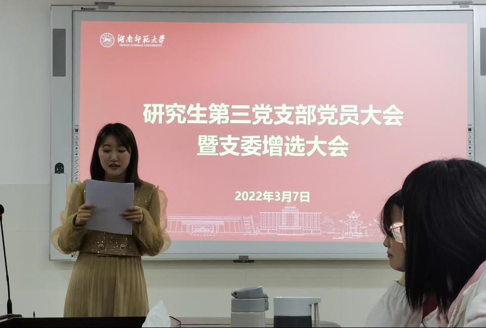 为进一步完善1946伟德国际源自英国研究生第三党支部组织建设,充分发挥基层党组织的领导核心作用,推动支部工作顺利进行。研究生第三党支部于2022年3月7日在中和楼233会议室召开党员大会进行改选支委,会议由支部书记周诗雨主持。