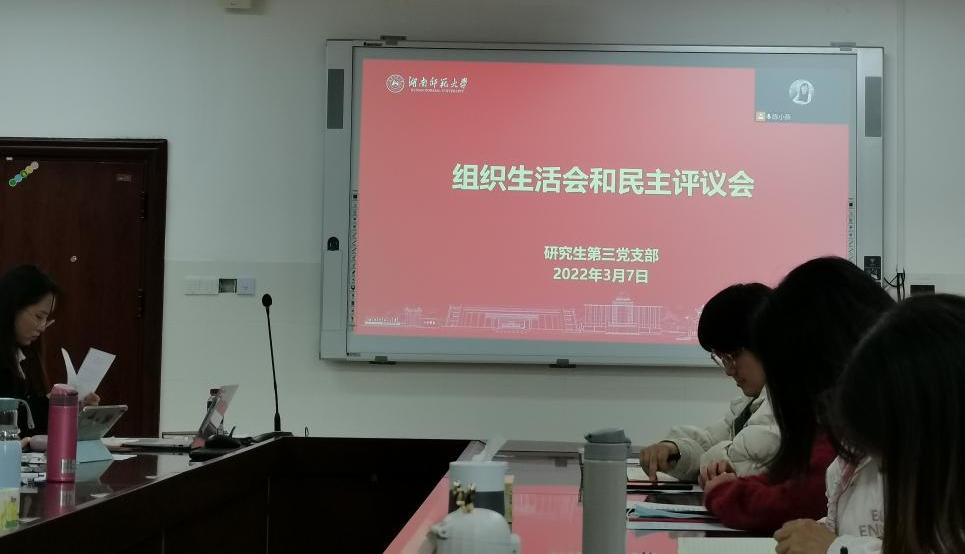 3月7日研究生第三党支部在中和楼233会议室召开2021年度组织生活会暨民主评议党员会,本次大会由支部书记周诗雨同志主持,1946伟德国际源自英国副院长向智勇同志、支部第一书记王晶同志出席会议,应到正式党员17名,实到14名;应到预备党员8名,实到7名。