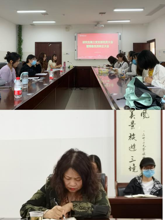 5月16日,研究生第三党支部在中和楼233会议室召开了党员大会,本次大会主要讨论张喜林、唐海霞、孙婧瑶、梁馨月、詹聪五位同志转正的基本事宜。党员大会由支部书记余妍希同志主持,学院党委副书记廖欢到会指导,应到正式党员18名,实到17名;应到预备党员8名,实到6名。